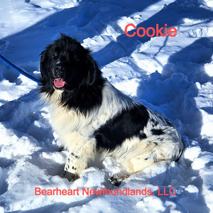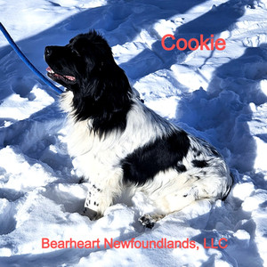 .Cookie is a beautiful Landseer Newfoundland. She is super friendly and very playful. She is a big ball of energy. She loves kids and adults of all ages and she loves playing with toys and playing in the water.